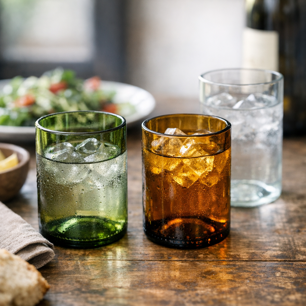 Beim Servieren sind es oft die kleinen Elemente, die Gäste überraschen. Gläser aus alten Wein- oder Wasserflaschen gehören zu den beliebtesten Upcycling-Objekten, weil sie hochwertig aussehen und gleichzeitig robust sind. Professionelle Glasveredelung sorgt für sichere Kanten und lange Haltbarkeit.