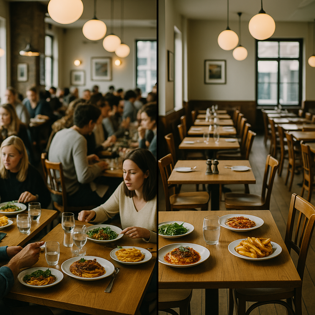 In der Gastronomie klingt das zunächst fremd. Doch eigentlich sind die Bedingungen ähnlich: Auch Sitzplätze im Restaurant sind knappe Kapazitäten. Auch dort gibt es Stoßzeiten, Leerläufe, Personalspitzen und Wareneinsätze, die ihren Wert im Laufe des Tages verlieren.
