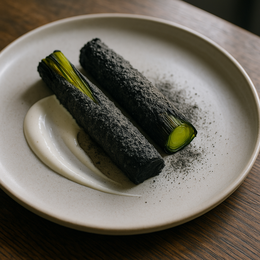 Asche ist nicht nur Restprodukt, sondern Textur und Würzmittel. Küchen verwenden saubere Pflanzenasche, etwa Lauch-Asche, um: