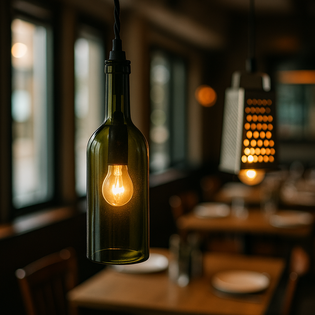 Und ja, Lampenschirme aus Flaschen, Reiben oder Einmachgläsern funktionieren großartig. Bitte aber immer einen Elektriker einbinden – Versicherung und Sicherheit gehen vor.
