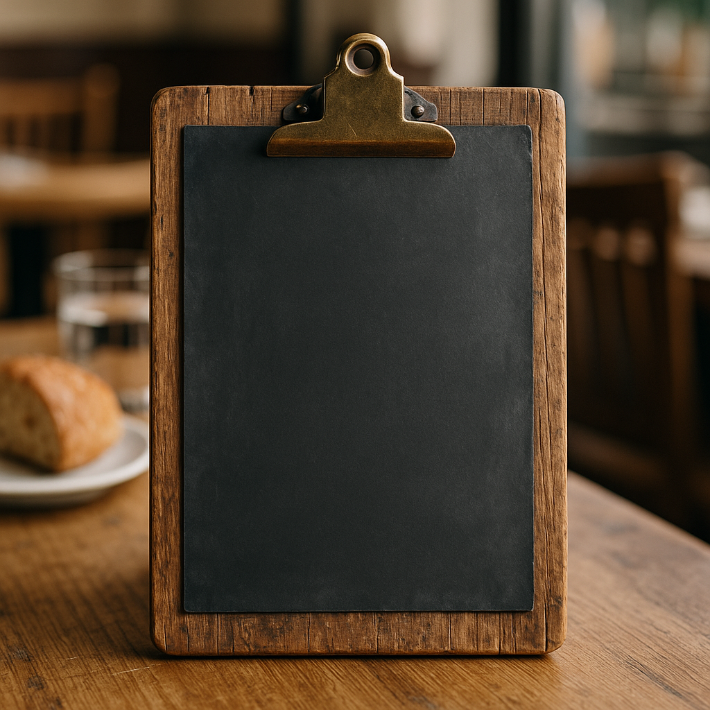 Menükarten müssen nicht aus Plastikmappen bestehen. Aus Holzresten, etwa Verschnitten vom Tischler, lassen sich robuste und ästhetische Klemmbretter bauen. Besonders in rustikalen oder modernen Konzepten ein echter Hingucker.